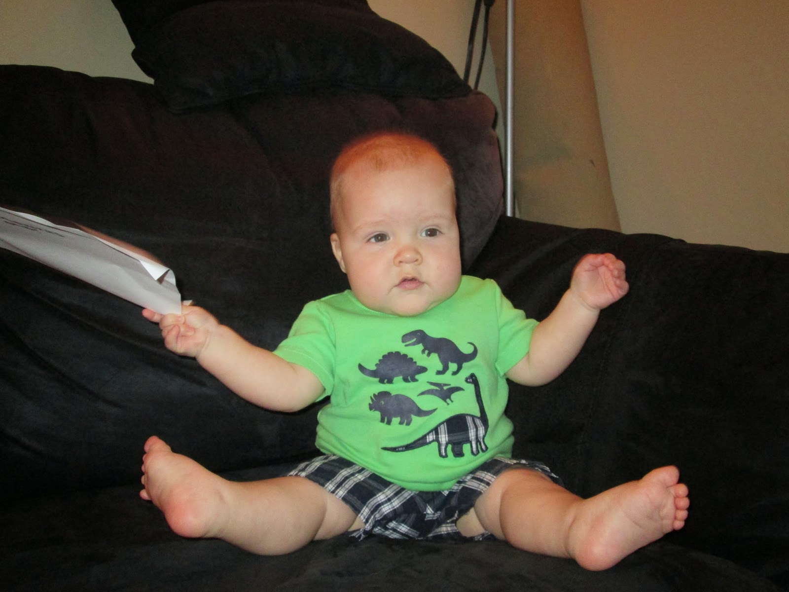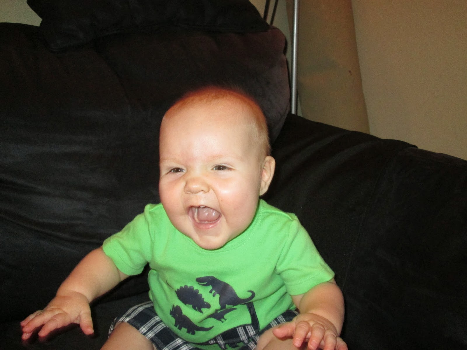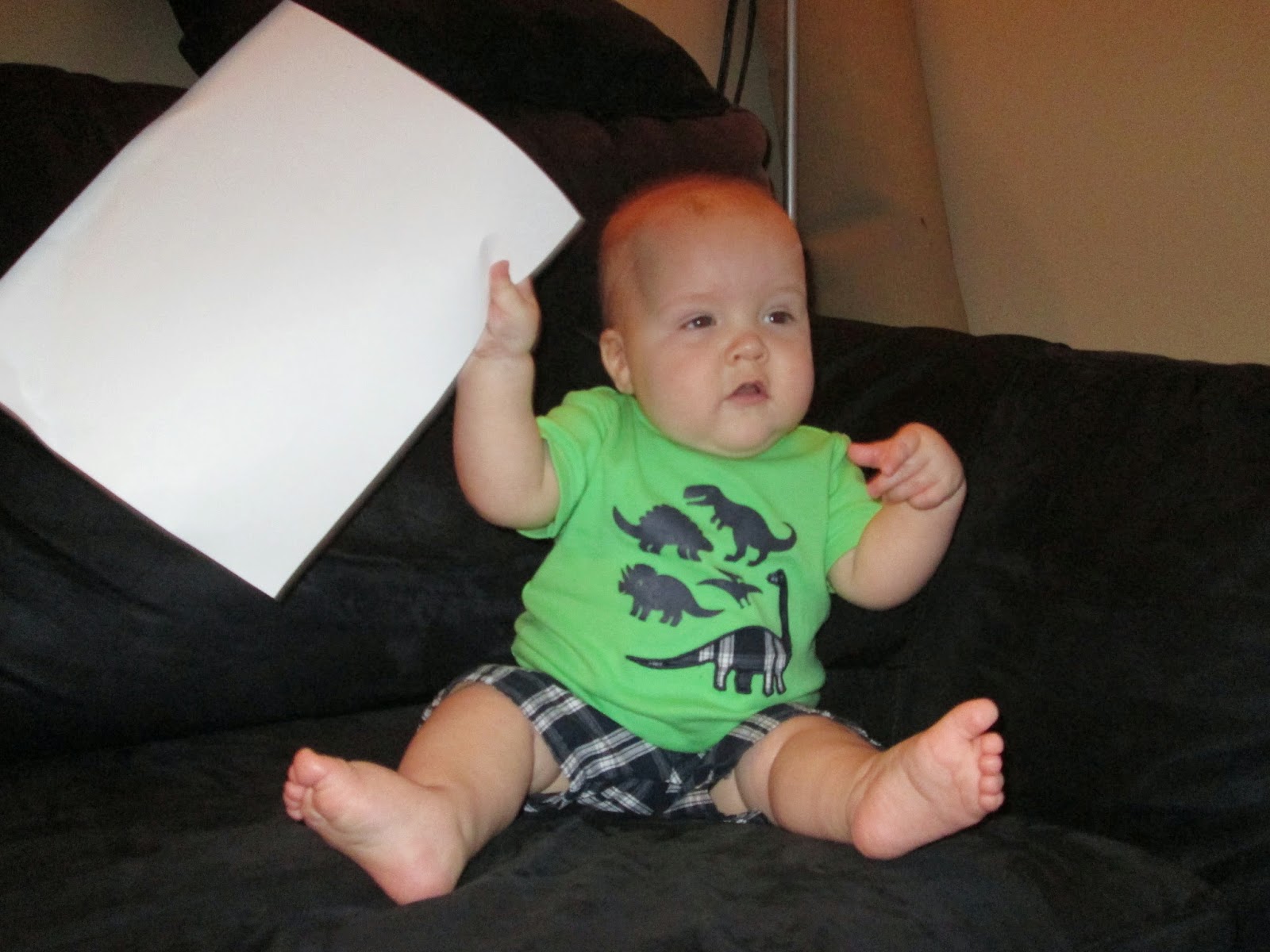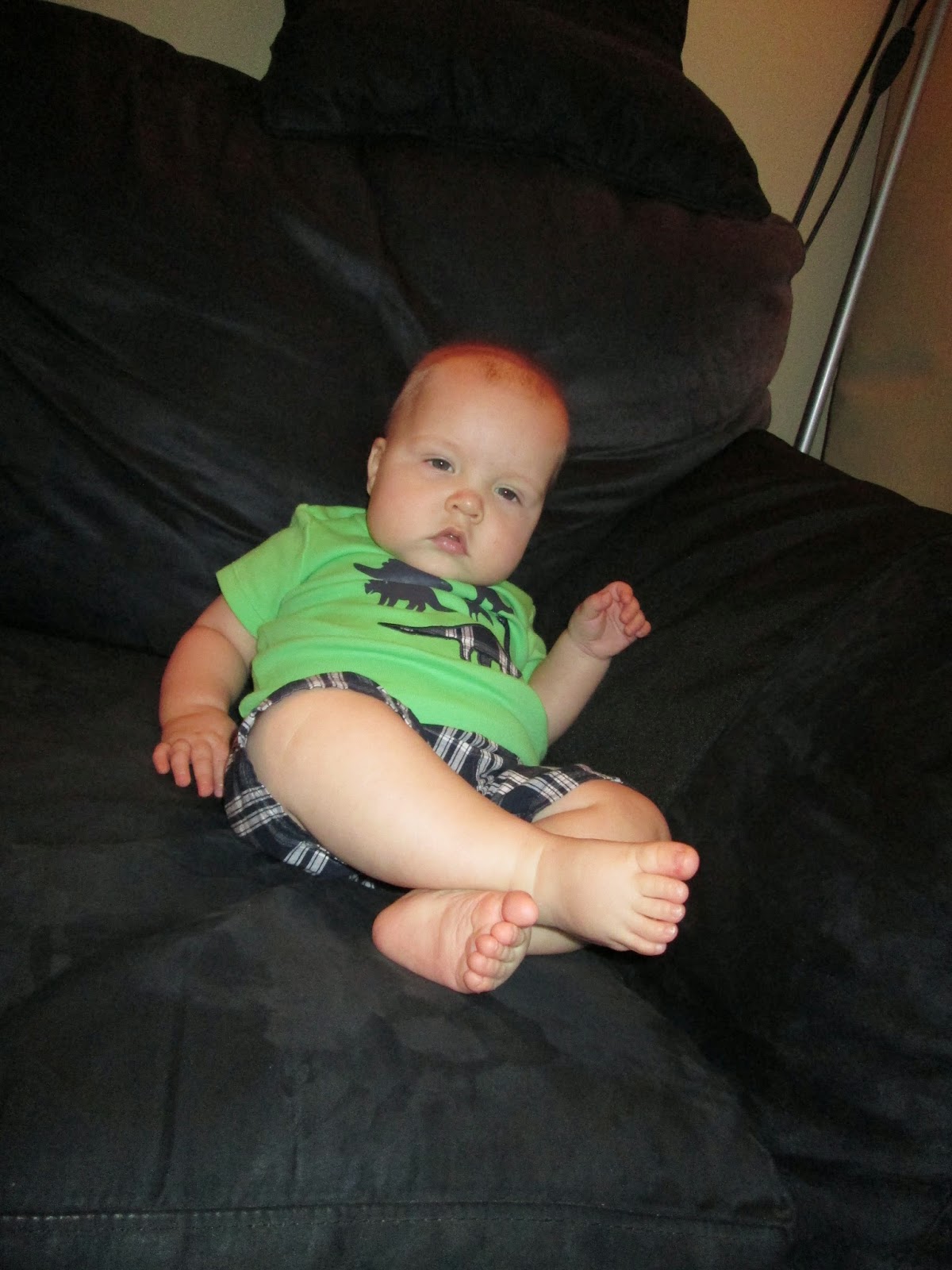 It is funny to think back to when I took his monthly pictures at about 1, 2, and 3 months. I had to work a bit to get a smile, but really he sat propped on the couch so nicely and ignored the sign. Now- no way. He is going to grab that sign and nothing will stop him! It makes for some cute pictures though. I love you so much, Ben. It is a joy to be a part of your life!