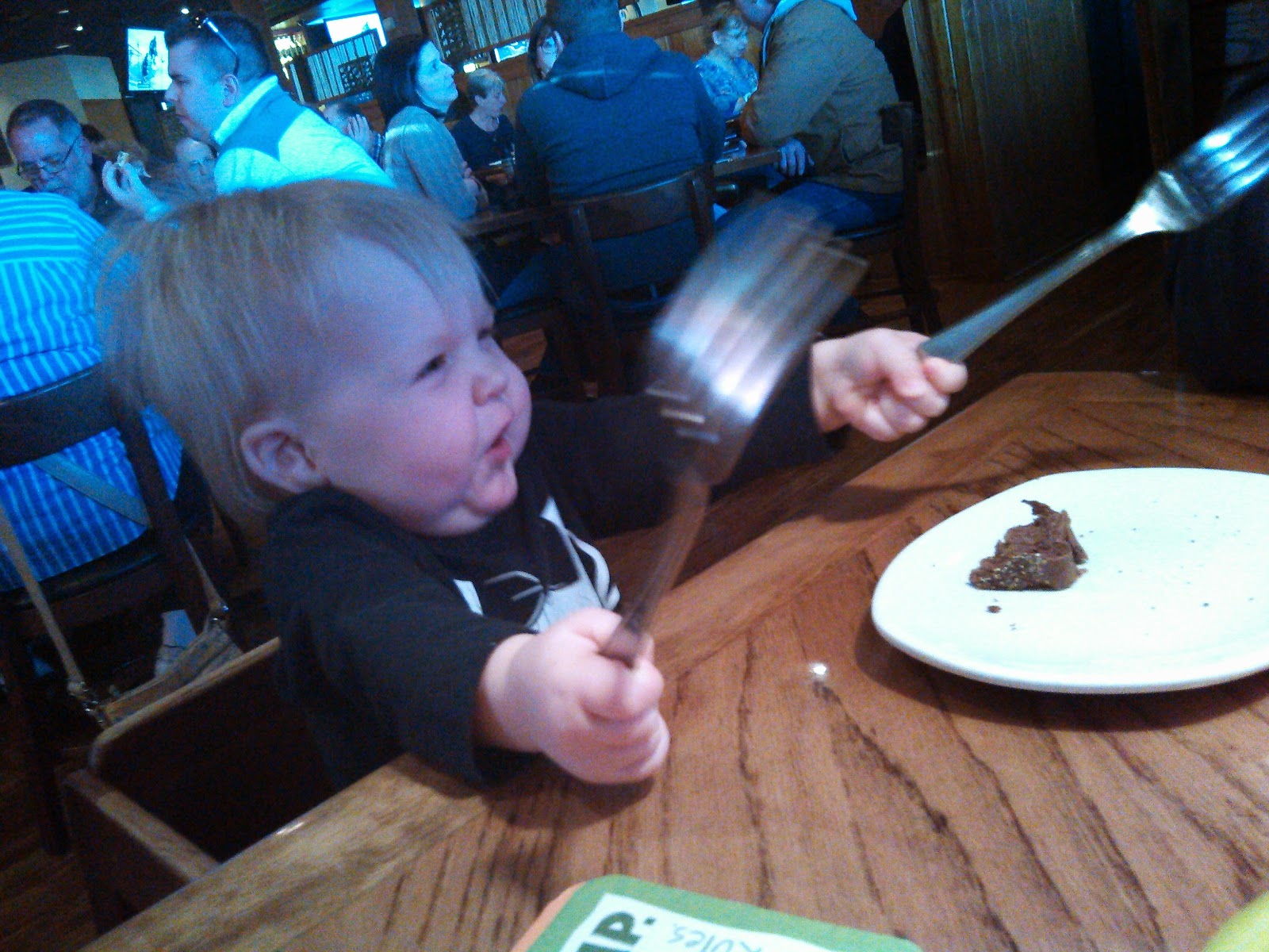 This past weekend Pat and I celebrated our 6th anniversary. 6 years! And we still like each other! This year we didn’t do anything big. We exchanged gifts based on the traditional gifts for six years- iron. That was a tough one. To celebrate this year we also went out to dinner to one of our favorite places- Outback! We are kind of doing a two part celebration. The children’s resale we go to every spring and fall is the weekend after our anniversary, and we knew we wanted to go to that. I’m a member of the group that puts it on, and we’re able to go to the pre-sale. The one downside is it is at 8pm. So we knew we wanted Meo and Omi to babysit Ben the week after our anniversary. Rather than miss out on his company two weeks in a row, we took him with us to our dinner at Outback!