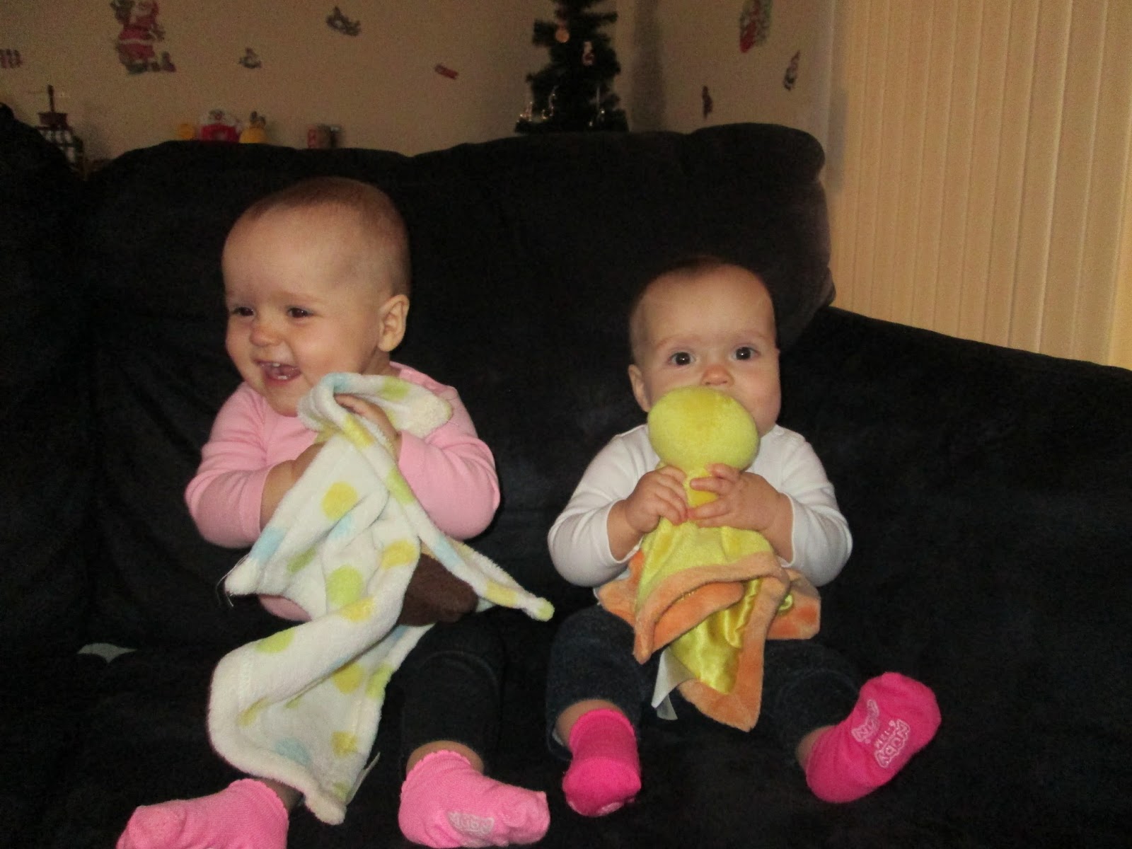 These are just the sweetest little ladies. Oh, they can be feisty. They let you know when they are not happy. But they are quickly happy again. Teething has been tough on them, and that is a time when I hate having twins. Both girls need to be held and loved on, and I am only one mommy. We make it through though. Ali and Sammy love to explore and play. They like to be a part of the action. They love to giggle and snuggle. They are just little loves and bring so much happiness to our lives. Life is busy when you have two babies on the go, but it is so much fun. I am so blessed to have these sweet girls as my daughters. They are delights. I love them so much.