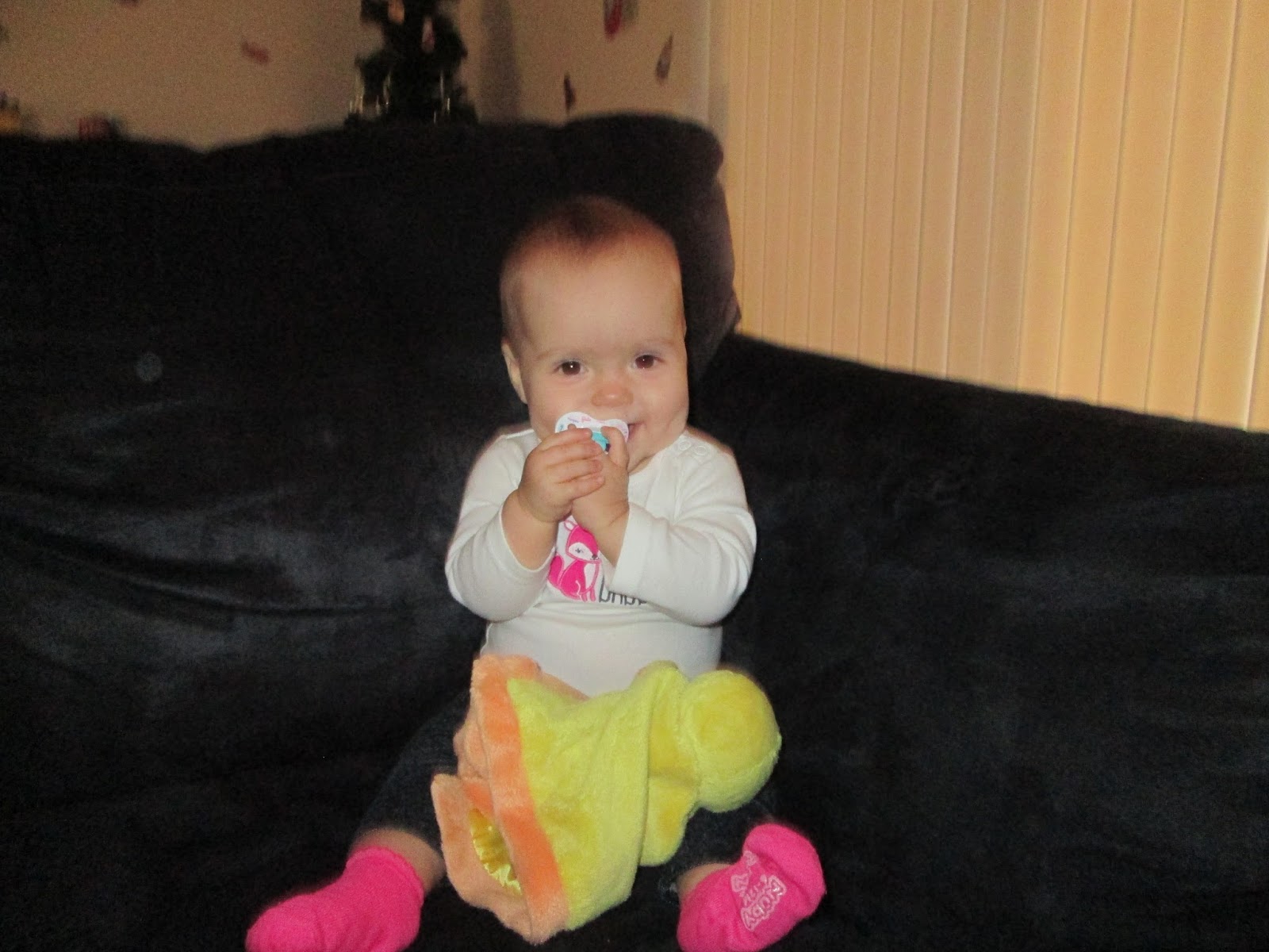 Sleep is going well. Sammy took her turn having some naps and bedtimes she wasn’t happy about. But it was just a handful of times though. Both girls are happy to get to nap time and crash hard at bedtime. They occasionally cry out at night, but giving them their pacifier solves any problems. Sometimes we hear a cry and when we get into the room both girls are sound asleep. So who knows who is doing that. They did have a hard time sleeping when we had Gramma and Grampa with us for Thanksgiving. I seriously think they just didn’t want to miss out on fun. Nothing was wrong. They would stop crying as soon as I went into the room. If I picked one of them up they would be straining to see into the hallway. I think they just wanted to go play. Other than that no real complaints though!