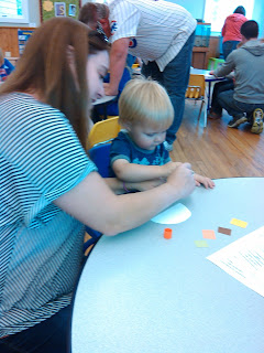 We got to make a rainbow craft! Ben really enjoyed picking out the colors to glue to his rainbow. I had to make sure he put most of the glue on the paper, not just all over the table. 😉