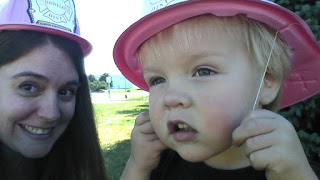 The firemen did apologize for only having pink hats. Ben of course did not care. He’s two, pink is just a color to him. Pat and I are pretty pleased though. We actually have a black fire hat from Touch-a-Truck. Two little pink hats will be perfect for two little girls. 😉 We’re thankful for all the firemen that work so hard to keep us all safe, and we’re happy it was a false alarm!