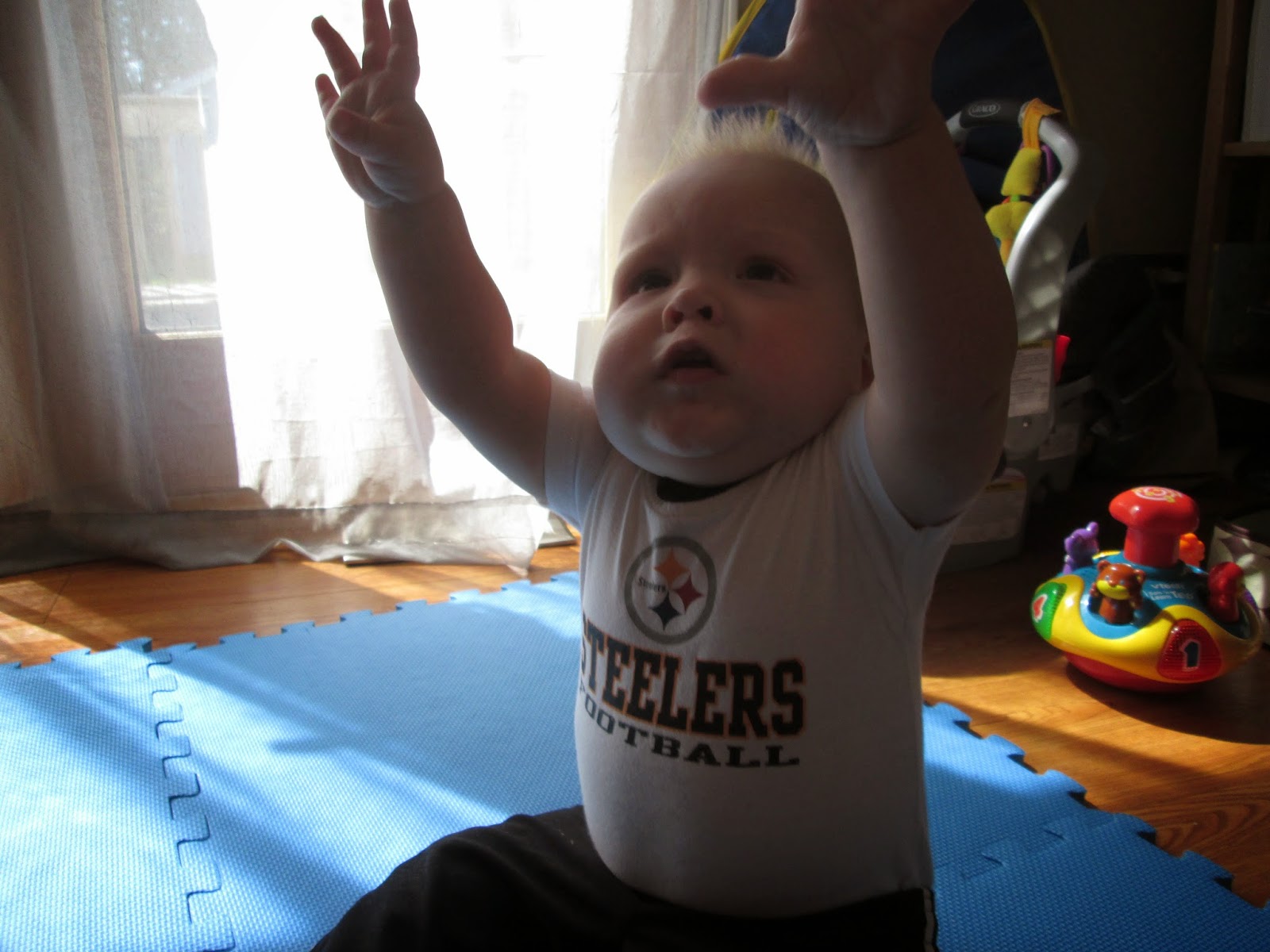 Team Cartwright is super into football. Okay, Pat is super into football. I enjoy the occasional game. I really want my team to win, but I don’t feel that they need me to watch the game in order for that to happen. Pat on the other hand must watch as many games as possible. So for the next few months our Sundays will be as full of football as Pat can manage and I will allow. I am actually pretty in favor of this plan, because it means Pat plays with Ben while I get stuff done around the house. No, that might not seem ‘fair’ to everyone. But hey, it works for us. Plus I do think it is nice that Ben gets to spend time with Pat learning about one of his favorite interests.