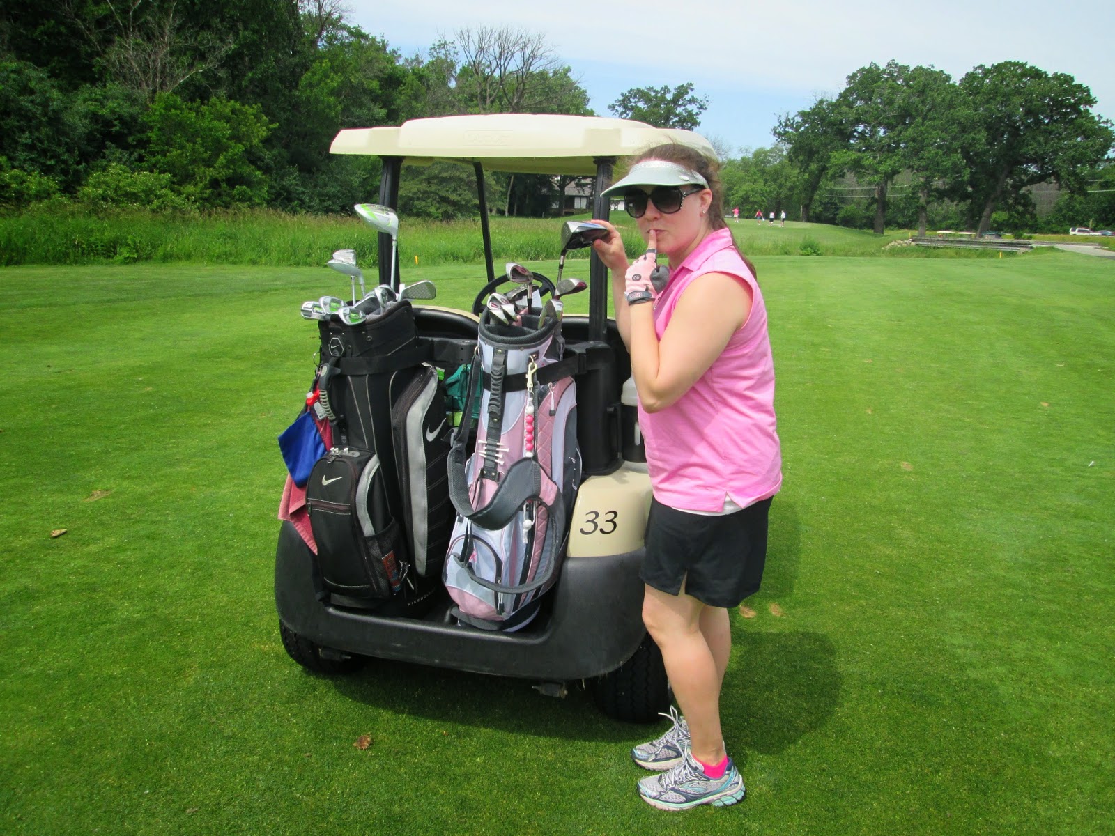 Every year Meo’s golf league has a Friend’s Day where non-league members can come play. I participated two years ago and had a ton of fun. Last year I was super pregnant, not great for golfing in the heat. But this year I got to go again! It was a blast. We had so much fun! It is a best ball scramble, which is good because I hadn’t played in almost two years. We did pretty well though! There were trivia questions at each hole, and additional challenges on some of the holes. We didn’t win any, but Meo came pretty close to the closest to the line challenge!