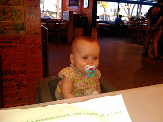 That night we also all went out to dinner! We don’t often go out, so this was a real treat! This is one of the first times the girls have gotten to sit at the table and eat with us. They loved it!!! Ben, Ali, and Sammy all had a great time. The girls were the stars of the show, so many people stopped by the table to see them!