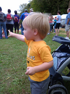 Most of what we did beyond watching the fish and the dogs was walk around and look at everything that was set up. They had an historic campground to walk through. Pat and I liked that, but Ben isn’t quite old enough to appreciate that kind of thing yet. 😉 We watched people fish and canoe on the lake. We did find a quiet place to stop and throw some rocks into the pond, Ben’s favorite activity. Before we left we stopped for a treat- snow cones! It was Ben’s first time having a snow cone. He loved it. We weren’t sure, as he doesn’t always like really cold stuff. (Seriously, we have to melt his ice cream a bit.) We shouldn’t have worried though. Because what is the best part of eating a snow cone? That’s right, using a straw to suck out all the sugar water as it melts. So that is pretty much what Ben did. I know, not the healthiest thing in the world to let him do. But really of all the treat options there, snow cones were probably the best option. The three of us shared two of them. This way Ben didn’t have to wait while we melted down ice, and Pat and I got to take turns eating ourselves. I’m not sure how that will work when we have three kids… At least for now it works well.