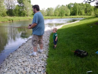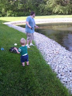 After a morning at the zoo, and a good nap for Ben, Ben and Pat got to do a little fishing! Ben really liked watching Pat cast his line, and he even tried it himself (with some help). He did not want to touch the fish or the worms, but was curious about them. Pat adores being outside. He loves fishing, and exploring, and just being in nature. Ben seems to be heading down that path too. I think Ben and Pat have a lot of fun outdoor adventures ahead of them.