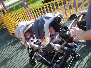 The playground is a handicap accessible one, and we were the only ones there. Perfect chance to bring Sammy and Ali onto the equipment for the first time!