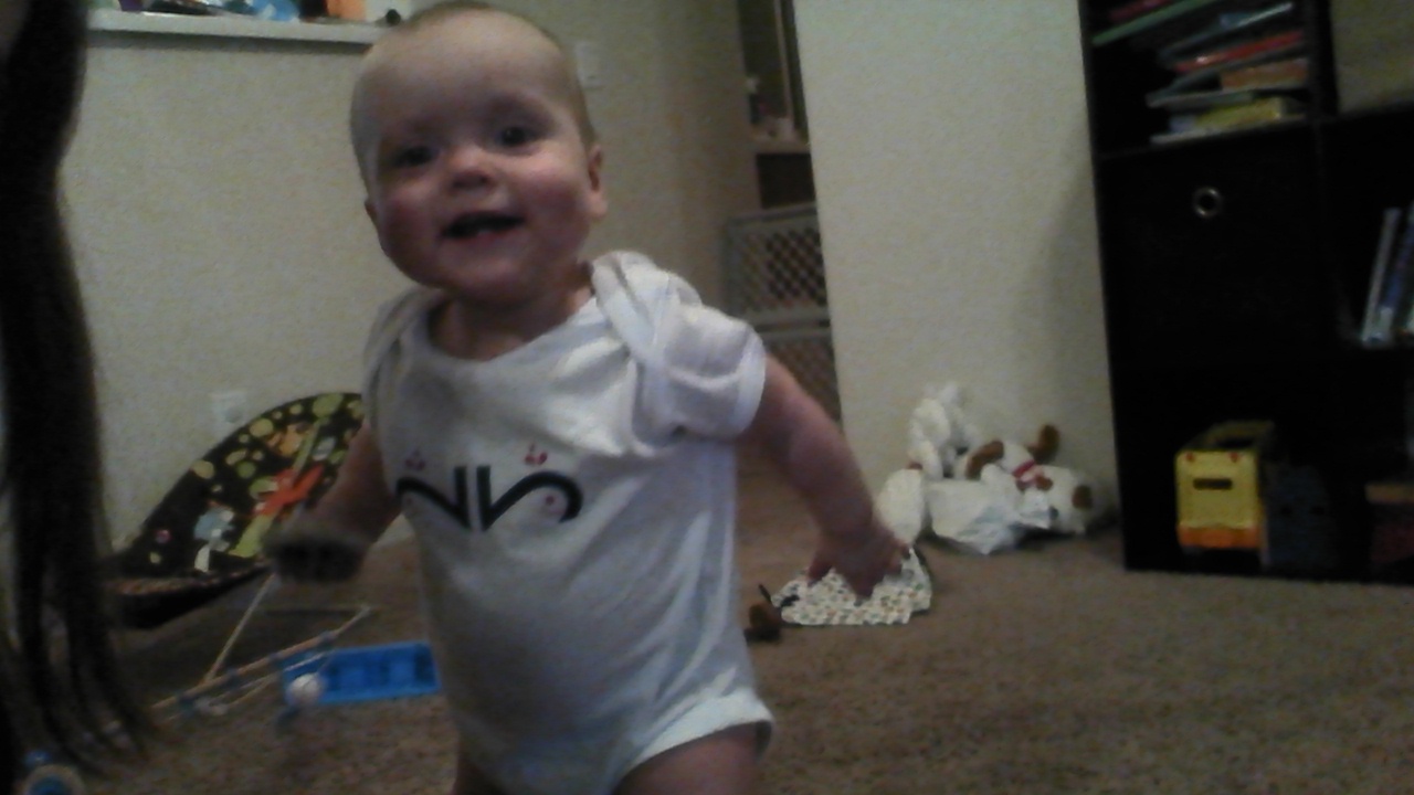 The girls got their onesies in the 18 month size, so they are a little big. (Ali and Sammy are 14 months now.) I prefer to get bigger so they have more time to wear them. With it already warm around here, so they will get a lot of use out of these. I love the cute design. The onesies are 100% cotton, great for baby skin. The girls looked so cute in them! Of course getting pictures of my two little busy bees was, well, quite the challenge. All I can say is that I tried.