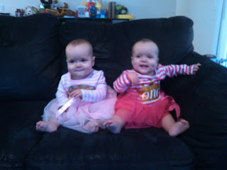 I had to get a few pictures of the girls in their pretty one year old party dresses.