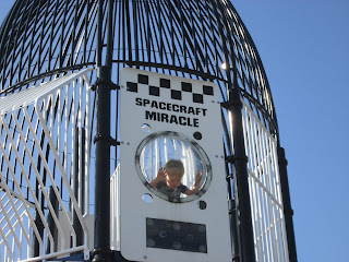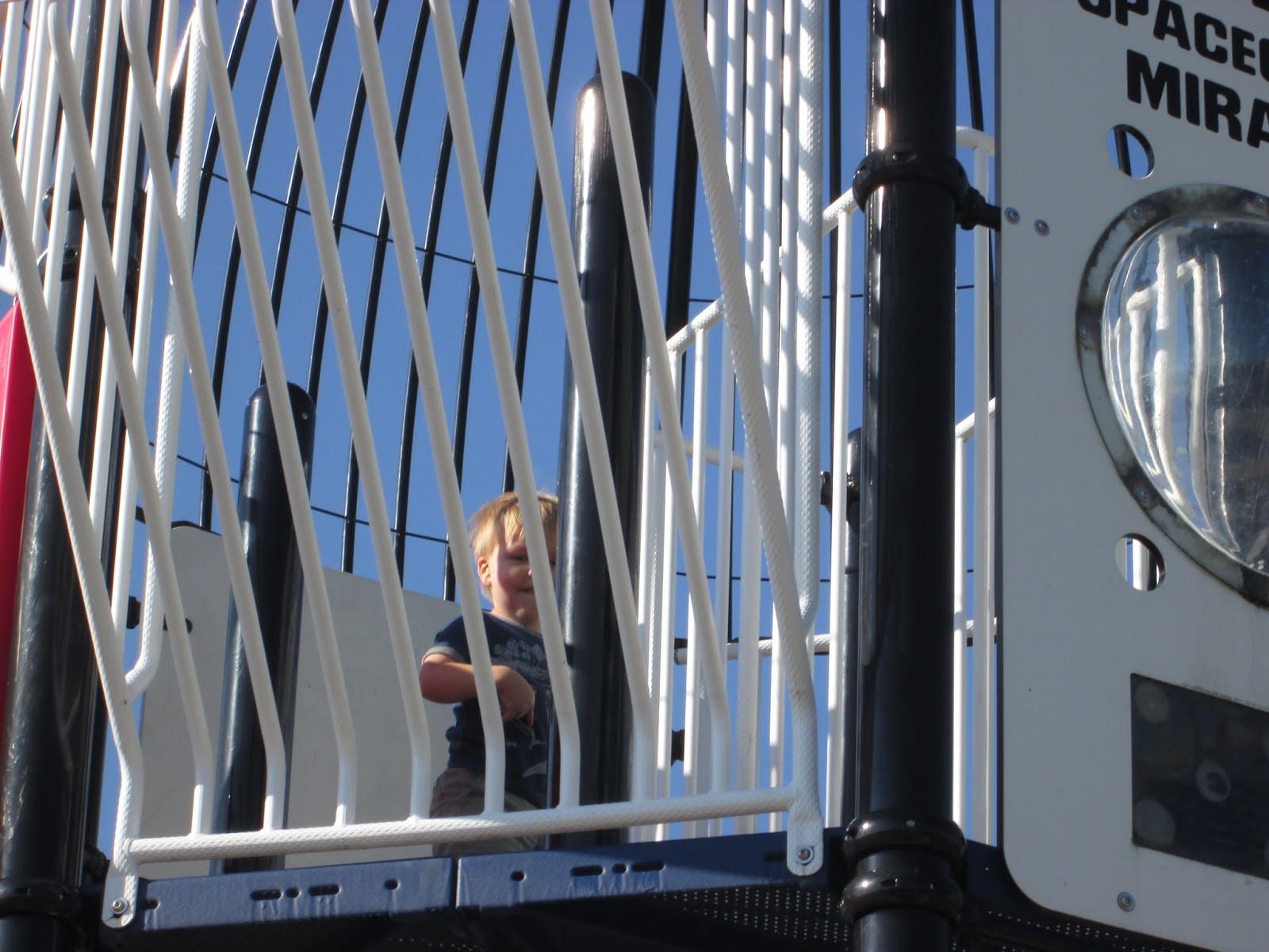 Ben was so excited when we pulled up! After our pirate play he had been asking to go on a ship. I couldn’t find any parks close enough with boats to play on. A rocket ship isn’t the same thing as a boat, but Ben found it to be pretty amazing. He raced right off as soon as I had our crew out of the car!