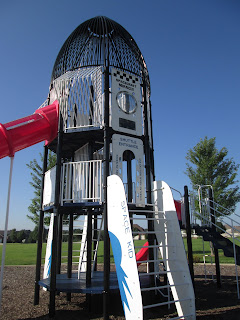 At the beginning of the summer Ben and I set the goal to go to every park district playground in our town. Sadly this goal got set aside in order to prepare and carry out our big move. We did hit up one last good one before we headed out of town though- the Rocket ship Park!