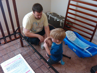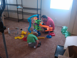 Ben saw his ball factory peeking out of a box. His wonderful daddy stopped everything else to get it put back together. Who needs beds? We need our toys! 🙂
