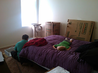 Moving day had to take place on a week day, so it was just me and the kids. I love having a three bedroom. I was able to have the kids all in one room to stay safe while the movers worked. They had fun too!