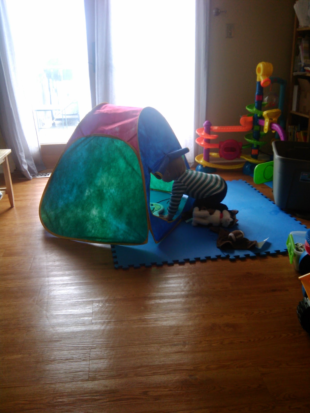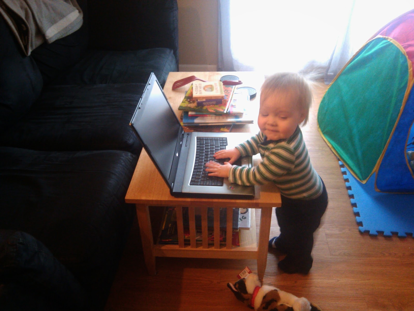 This is the first time Ben and I have worked from home. We’ve had to stay home on occasion, but this time I had actual things to do. I even had a work computer to log into the office and get the files I need. Everything was ready for me to have a productive day while waiting for the plumber. Everything except having a toddler home with me. That was the mystery factor.
